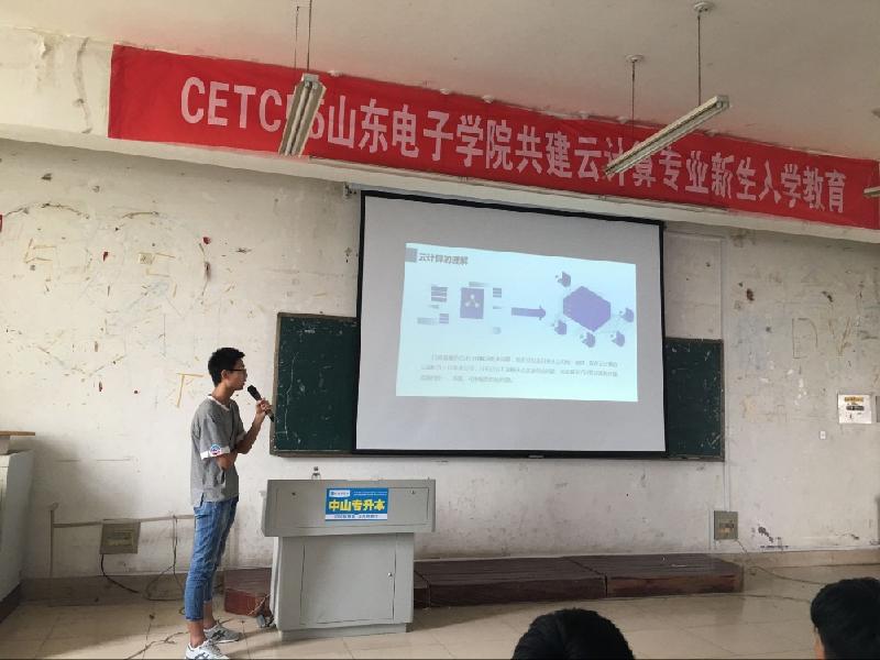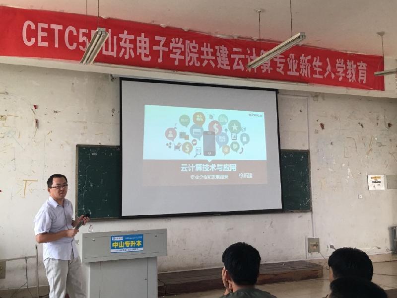 首先,南京第五十五所技術(shù)開(kāi)發(fā)有限公司山東公司徐新建工程師從云計(jì)算概念、發(fā)展趨勢(shì)、工作前景、企業(yè)的優(yōu)勢(shì)特色等幾個(gè)方面為同學(xué)們做了詳細(xì)介紹。徐工指出,國(guó)家政策導(dǎo)向與新一代信息化技術(shù)的應(yīng)用為云計(jì)算技術(shù)的發(fā)展奠定了基礎(chǔ),云計(jì)算技術(shù)與應(yīng)用專業(yè)人才是社會(huì)的緊缺人才,同學(xué)們學(xué)好自己的專業(yè)課程,將來(lái)一定大有可為,企業(yè)將與學(xué)校一起,通過(guò)開(kāi)展云計(jì)算大賽、職業(yè)素養(yǎng)特色教育及各種文化活動(dòng)為云計(jì)算校企合作專業(yè)增光添彩。