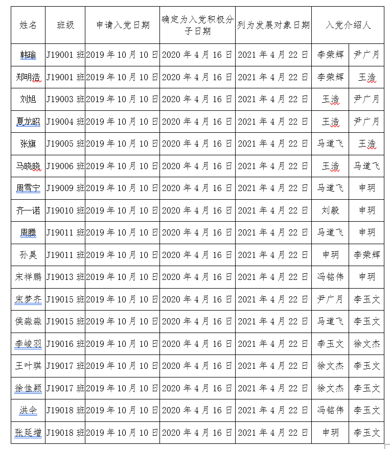 所公示同志經(jīng)過黨支部的培養(yǎng)教育和考察,已基本具備黨員條件,在聽取培養(yǎng)聯(lián)系人、黨員和群眾意見的基礎(chǔ)上,2021年4月22日,經(jīng)支部委員會討論同意并報學(xué)校黨委備案,被列為發(fā)展對象。