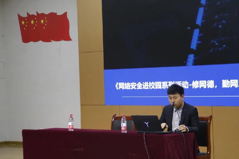 隨后,學(xué)生代表陳昊宣讀了網(wǎng)絡(luò)安全倡議書,號(hào)召全體師生恪守法律底線,嚴(yán)格遵守憲法和網(wǎng)絡(luò)安全法律法規(guī);遵守社會(huì)公德,堅(jiān)持理性文明上網(wǎng);提升安全意識(shí),提高網(wǎng)絡(luò)安全防護(hù)能力,履行高校大學(xué)生義務(wù),踐行社會(huì)主義核心價(jià)值觀。