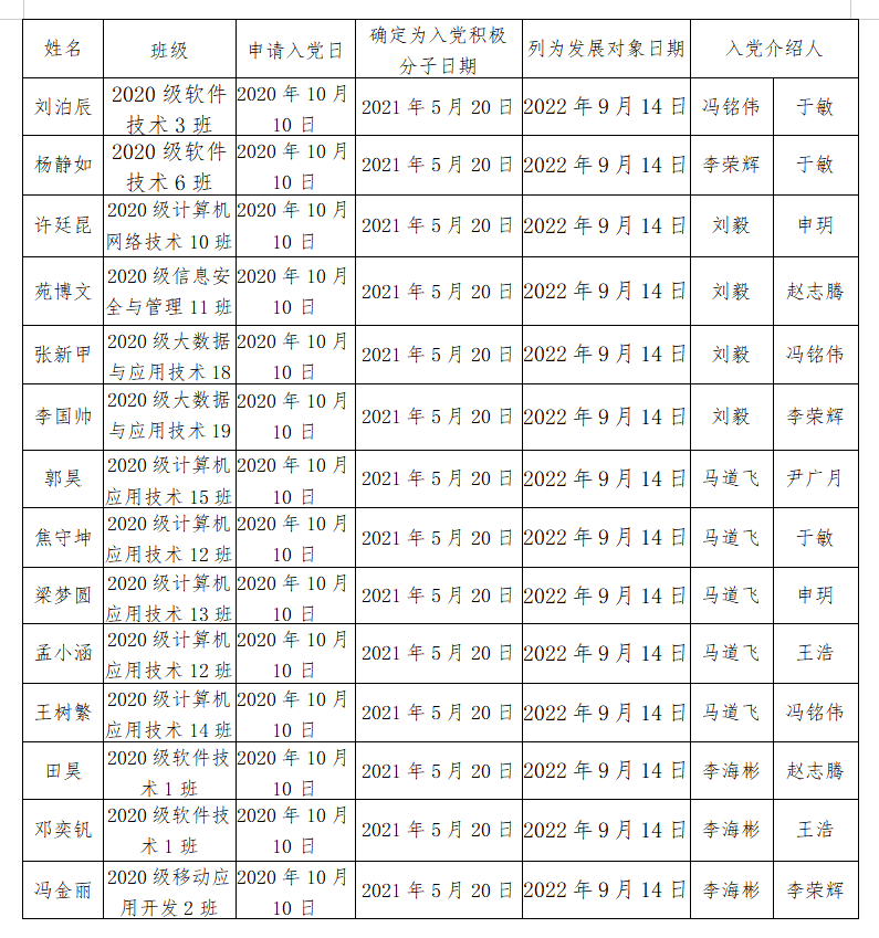 我支部于2022年11月4日召開支部大會,通過決議接收苑博文等14名同志為中共預(yù)備黨員,詳細信息見附件。