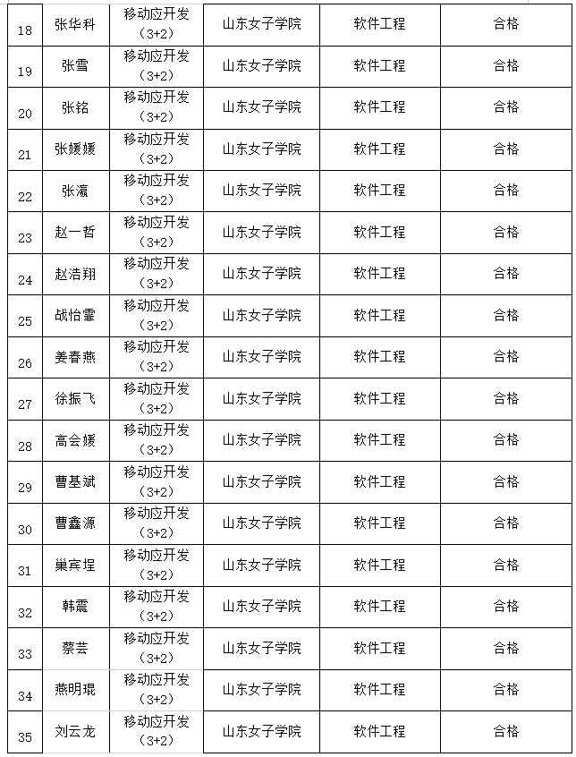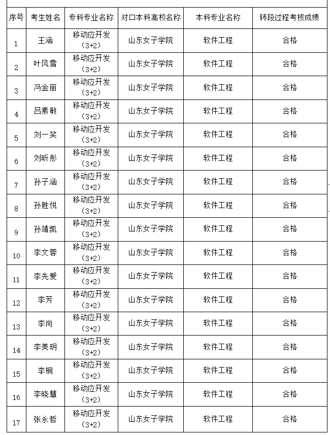 經(jīng)山東電子職業(yè)技術(shù)學(xué)院轉(zhuǎn)段考核工作小組討論研究,王涵等35名同學(xué)符合轉(zhuǎn)段過程考核要求,過程考核成績合格,根據(jù)組織工作相關(guān)要求,現(xiàn)予以公示,名單見附頁。