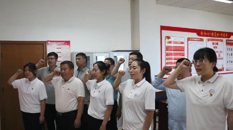 會(huì)上,全體黨員面對(duì)鮮紅的黨旗,舉起右手,緊握右拳,再一次莊嚴(yán)宣誓。鏗鏘有力的誓言使黨員們?cè)俅谓邮苄撵`洗禮,更加堅(jiān)定入黨時(shí)的初心,激勵(lì)全體黨員充分發(fā)揮先鋒模范作用,以實(shí)際行動(dòng)為黨旗添彩。