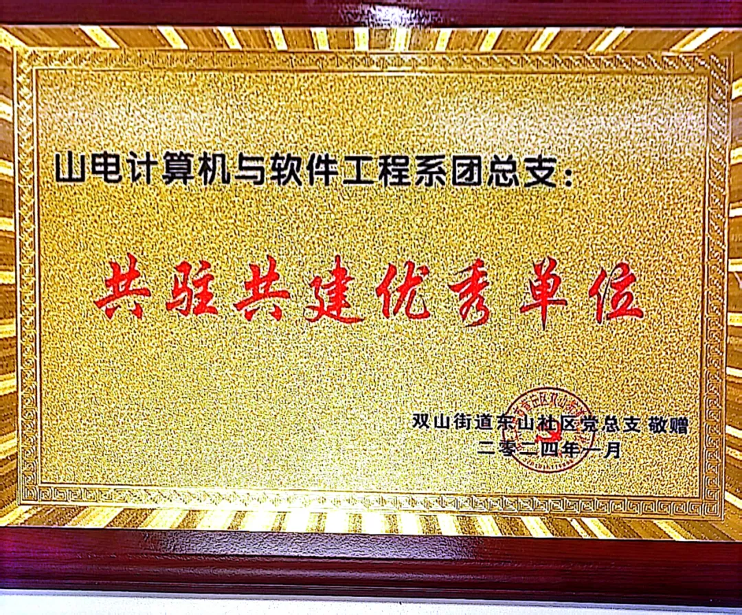 1月26日,我系團(tuán)總支應(yīng)邀參加雙山街道東山社區(qū)“情暖東山譜新篇 逐夢歡歌幸福年”—東山社區(qū)主題黨日暨居民春節(jié)聯(lián)歡會,并被授予“共駐共建優(yōu)秀單位”榮譽(yù)稱號。