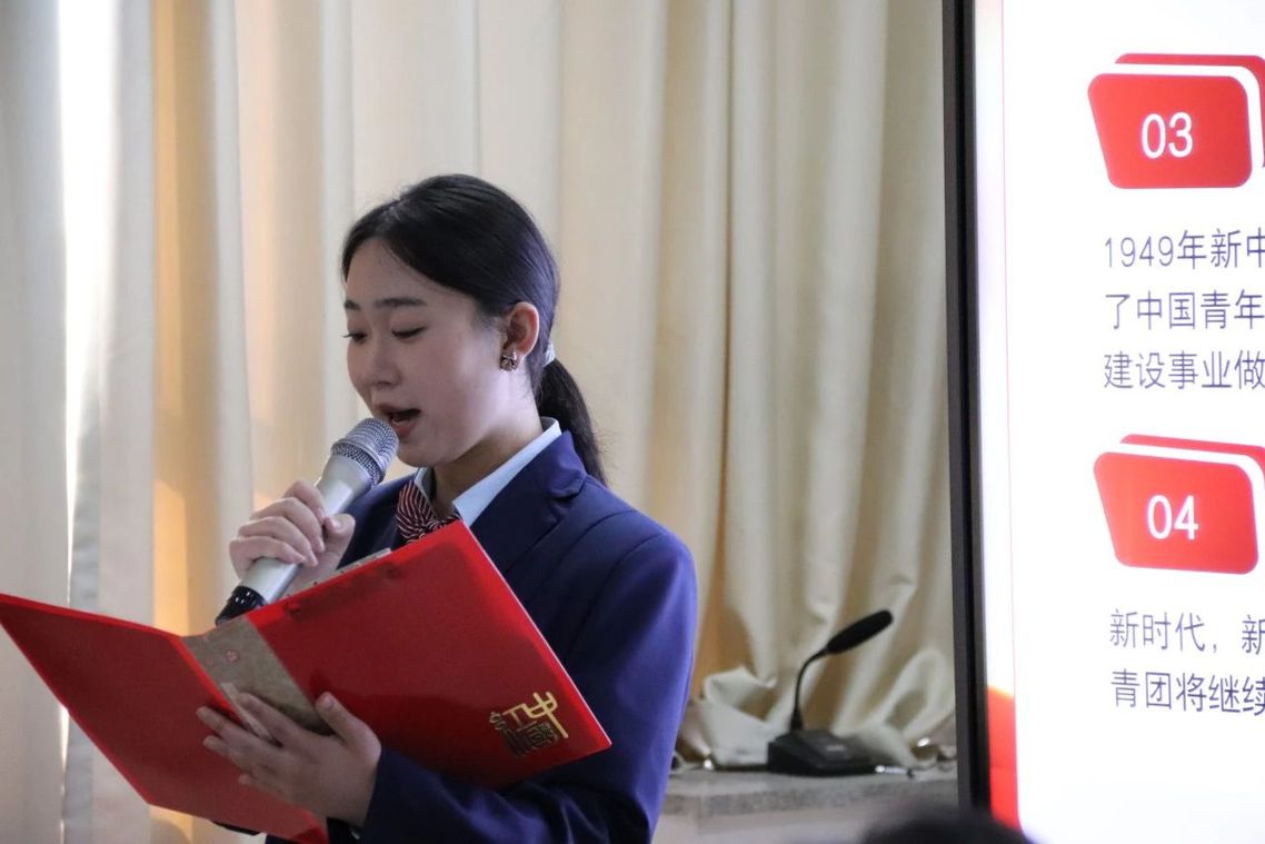 在慷慨激昂的國歌中拉開了活動的序幕,同學們歌聲嘹亮、氣宇軒昂,盡綻青春芳華;隨后,劉晨與同學們共同回顧了共青團發(fā)展史,共同回憶百年前青年的所思所想,使同學們對五四精神有了更深刻的理解與認識。
