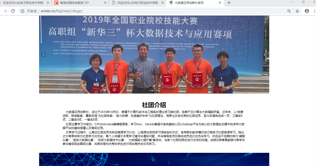 圖1 社團(tuán)官網(wǎng)與介紹