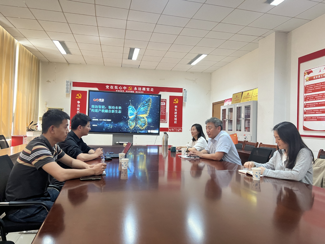 與商湯科技的座談中,商湯教育華北區(qū)域業(yè)務(wù)總監(jiān)朱寧介紹了公司的基本情況和在教育領(lǐng)域的業(yè)務(wù)布局。劉學(xué)院長(zhǎng)隨后就校企合作、人才培養(yǎng)和學(xué)生就業(yè)等方面與對(duì)方進(jìn)行了深入的探討和交流。雙方一致認(rèn)為,加強(qiáng)校企合作,共同推動(dòng)人才培養(yǎng)和產(chǎn)教融合,是提升人才質(zhì)量、服務(wù)社會(huì)發(fā)展的有效途徑。經(jīng)過(guò)熱烈討論,雙方就師資培訓(xùn)項(xiàng)目、現(xiàn)場(chǎng)工程師申報(bào)、大賽承辦等方面達(dá)成了初步意向,并期待在更多領(lǐng)域?qū)崿F(xiàn)互利共贏。