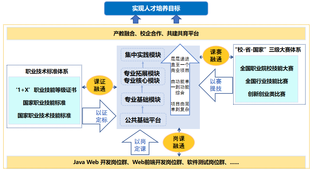 軟件技術(shù)專業(yè)注重深化校企合作、產(chǎn)教融合,組建校企雙元育人團隊,共同開發(fā)“崗課賽證融通”的課程體系和教材,共同制定人才培養(yǎng)方案,進(jìn)行協(xié)同創(chuàng)新和技術(shù)服務(wù),實施校企雙元育人;課程教學(xué)采用項目引導(dǎo)的教學(xué)模式,通過由簡單到復(fù)雜、由功能單一到功能復(fù)雜、一直到一個綜合商業(yè)性項目的一體化實踐教學(xué)和訓(xùn)練項目,貫穿人才培養(yǎng)全過程,實現(xiàn)能力梯進(jìn)培養(yǎng)。