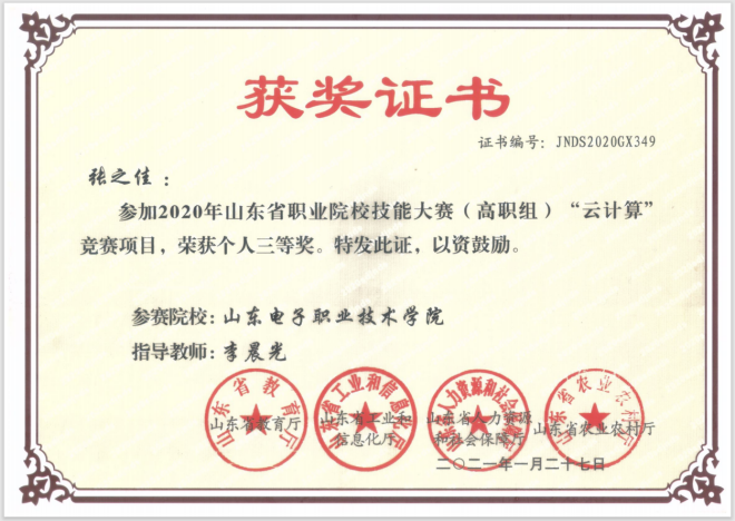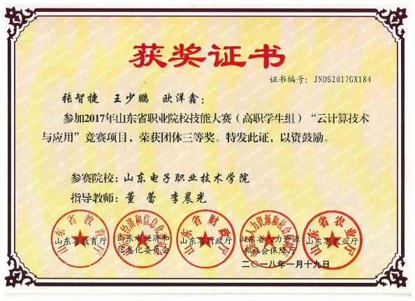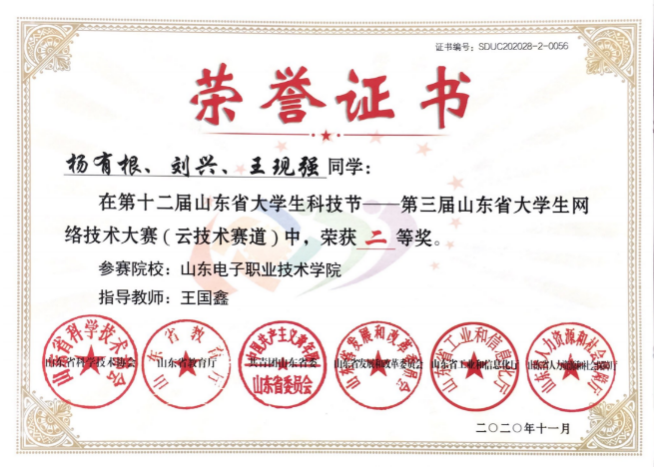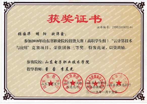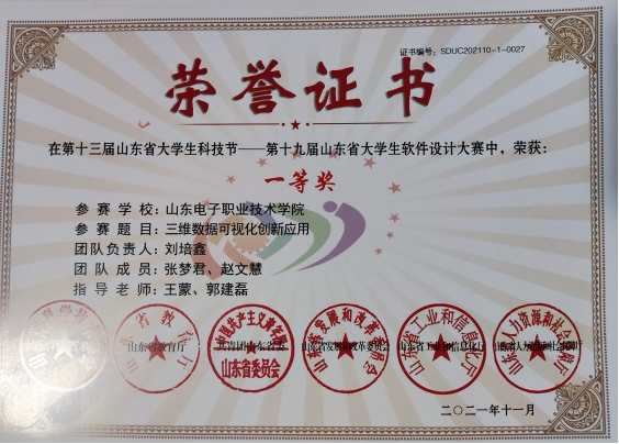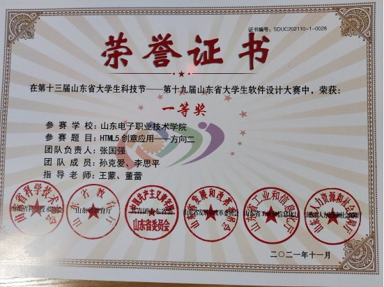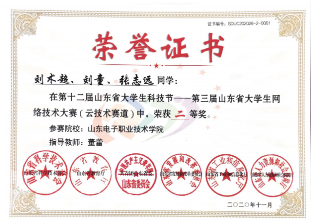 第十屆山東省大學生科技節(jié)第三屆山東省大學生網(wǎng)絡(luò)技術(shù)大賽優(yōu)秀組織獎: