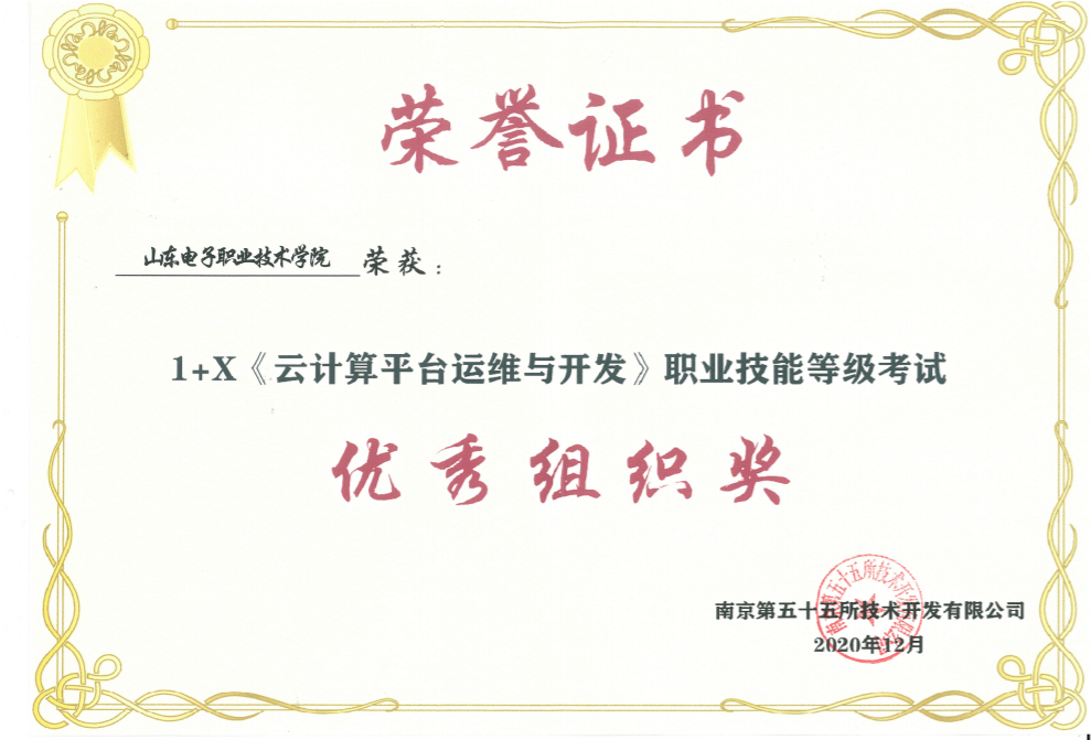 獲1+X《云計算平臺運維與開發(fā)》職業(yè)技能等級考試優(yōu)秀組織獎,獲證學生比例達86%: