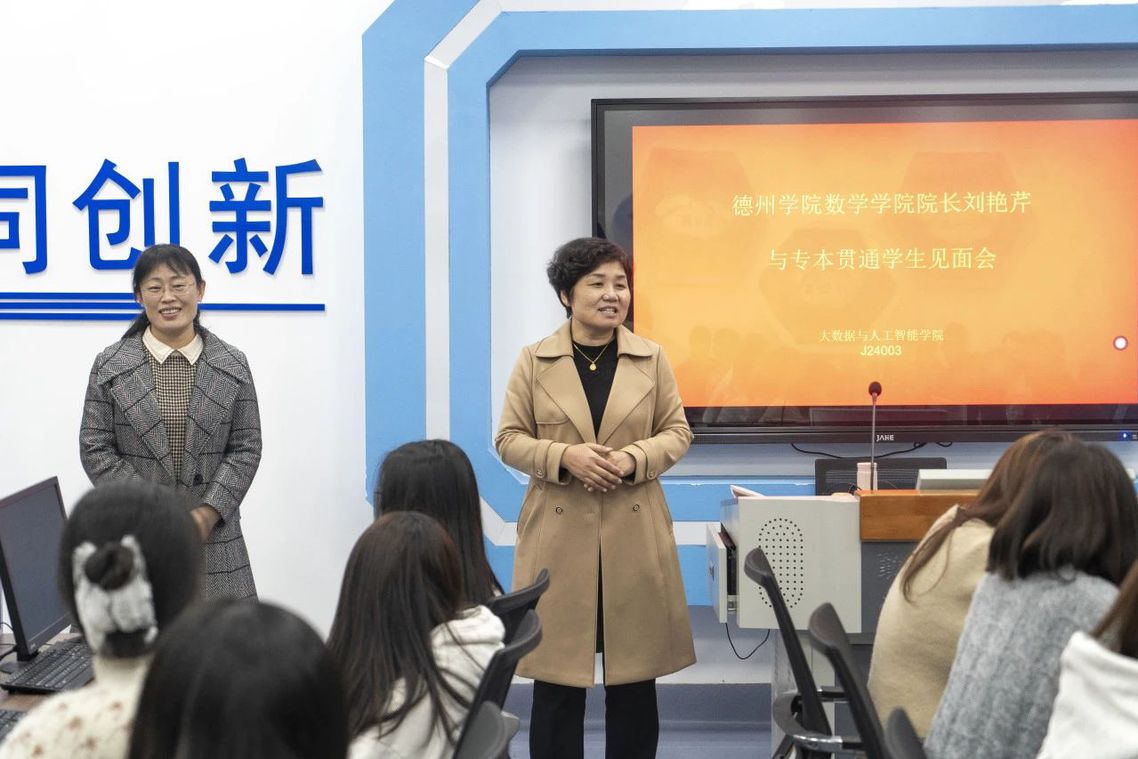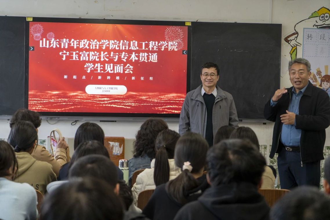 為加強與本科院校的交流合作,幫助2024級“3+2”專本貫通班新同學(xué)明確學(xué)習(xí)路徑,堅定目標(biāo),盡早規(guī)劃。11月1日——2日,大數(shù)據(jù)與人工智能學(xué)院邀請山東青年政治學(xué)院信息工程學(xué)院院長寧玉富、德州學(xué)院數(shù)學(xué)與大數(shù)據(jù)學(xué)院院長劉艷芹分別為2024級軟件技術(shù)專業(yè)、大數(shù)據(jù)技術(shù)專業(yè)“3+2”對口貫通分段培養(yǎng)的學(xué)生作入學(xué)教育講座。大數(shù)據(jù)與人工智能學(xué)院院長劉學(xué)、黨總支書記王紅、管理干部、輔導(dǎo)員代表共同參加。