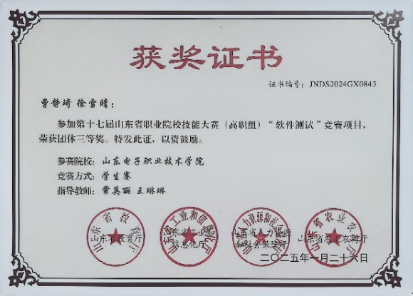 軟件技術(shù)專業(yè)育人成效顯著,為社會輸送了大批優(yōu)秀的信息技術(shù)人才,部分畢業(yè)生已成長為企業(yè)的中堅(jiān)力量和領(lǐng)軍人物。學(xué)生在校期間參加全國及全省各類職業(yè)技能大賽獲獎60余項(xiàng),其中“山東省大學(xué)生軟件設(shè)計(jì)大賽”特等獎2項(xiàng)、“全國大學(xué)生軟件測試大賽”特等獎3項(xiàng),“中國軟件杯”大學(xué)生軟件設(shè)計(jì)大賽獲獎5項(xiàng),全國及全省職業(yè)院校技能大賽獲獎10余項(xiàng),被授予“山東高校十大優(yōu)秀學(xué)生”1人。本專業(yè)學(xué)生的專升本率始終保持在學(xué)院前列。(大數(shù)據(jù)與人工智能學(xué)院 圖文:大數(shù)據(jù)與人工智能學(xué)院)