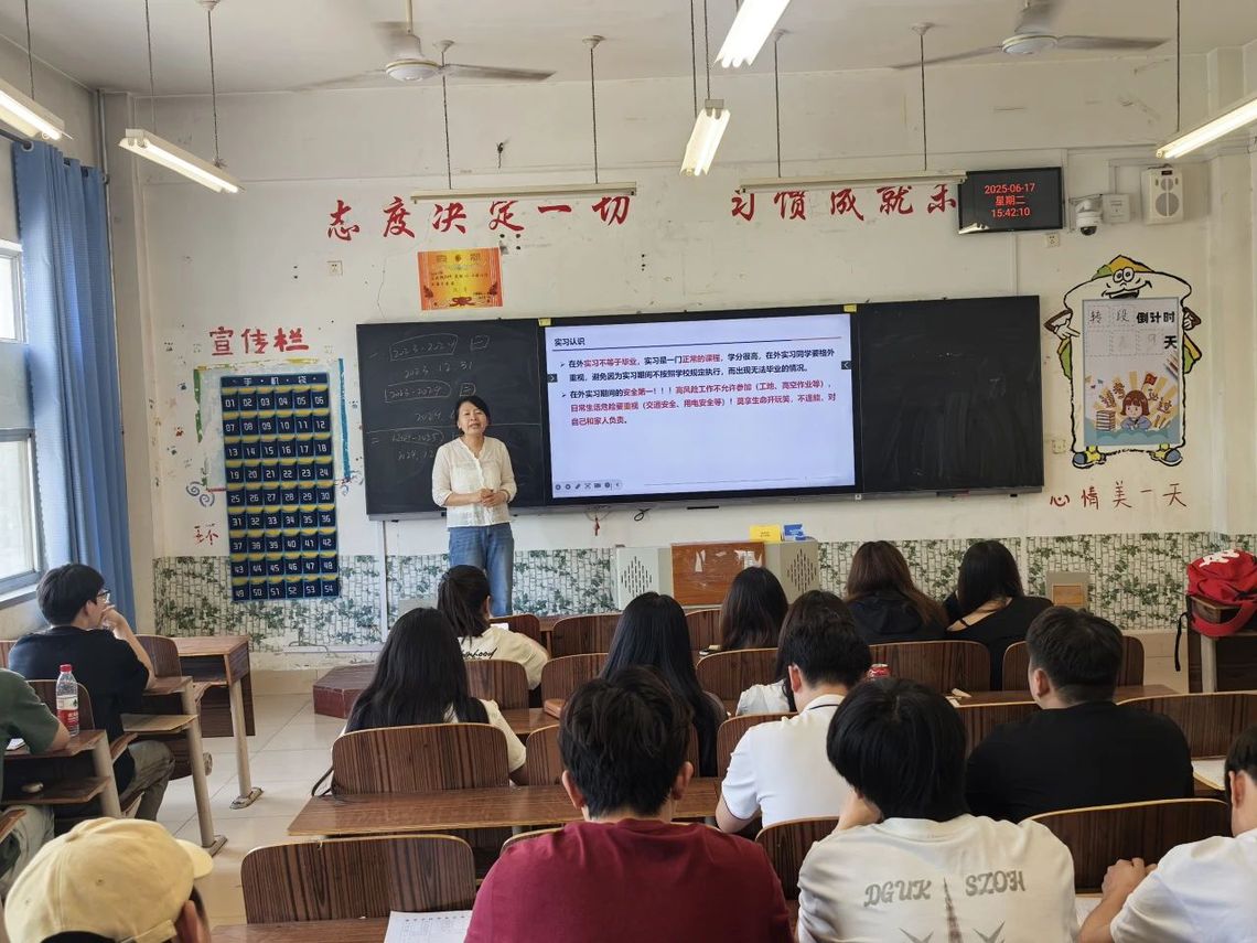 ??會上,實習(xí)指導(dǎo)老師們依托豐富的行業(yè)實踐經(jīng)驗,從職業(yè)發(fā)展規(guī)劃與行業(yè)前沿視角,深度剖析實習(xí)在高等教育中的核心價值。他們指出,實習(xí)是連接理論與實踐的關(guān)鍵紐帶,學(xué)生既能借此洞察行業(yè)動態(tài)、提升專業(yè)技能,又能強化責(zé)任擔(dān)當(dāng),為職業(yè)發(fā)展奠定堅實基礎(chǔ)。同時,實習(xí)指導(dǎo)老師與輔導(dǎo)員著眼學(xué)生長遠發(fā)展,鼓勵學(xué)生參與專升本深造,強調(diào)學(xué)歷提升對能力進階的重要性,提醒學(xué)生提前規(guī)劃,適應(yīng) “實習(xí)生” 與 “備考者” 雙重身份。此外,老師們通過案例分析,著重強調(diào)實習(xí)安全規(guī)范,引導(dǎo)學(xué)生樹立安全意識,確保實習(xí)平穩(wěn)有序開展。
