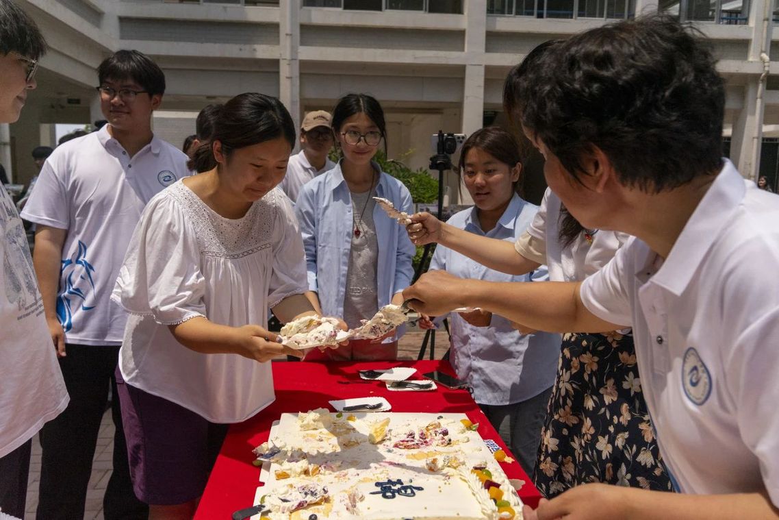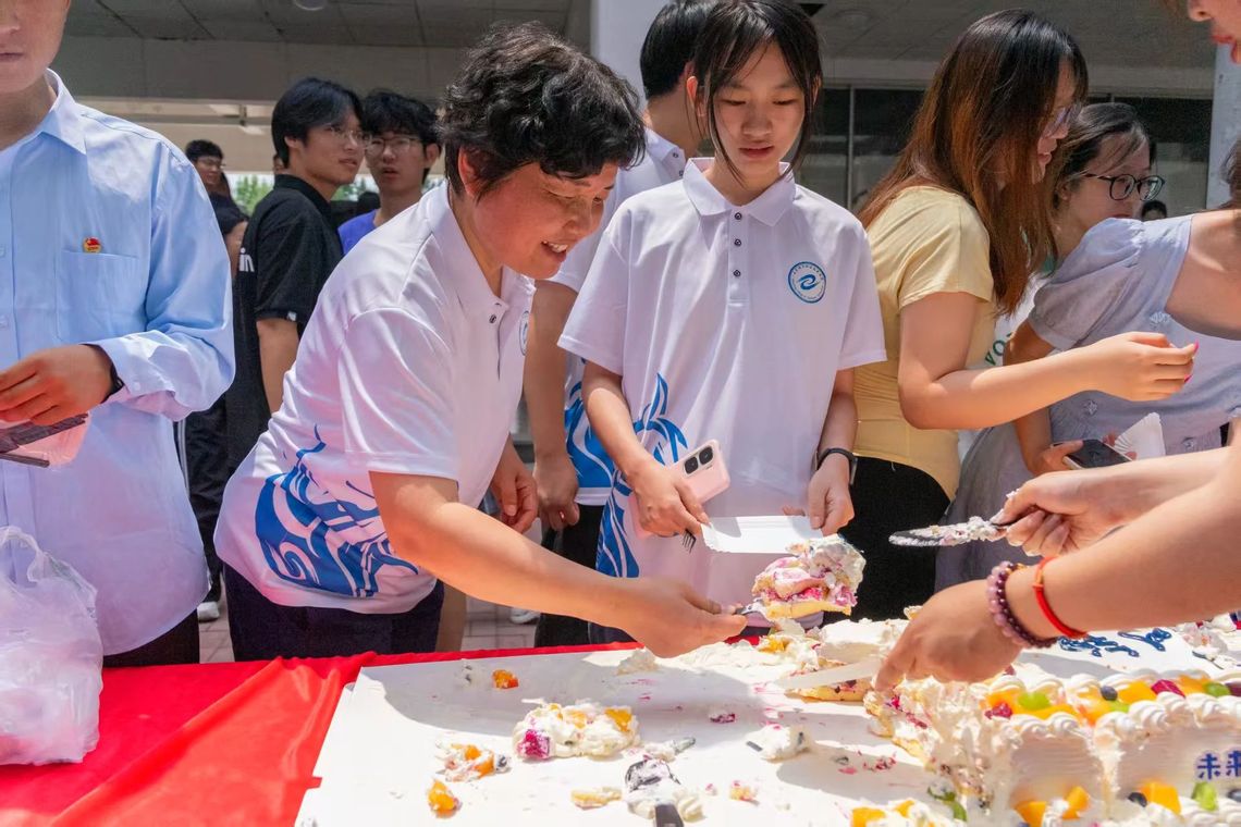 ??冷餐區(qū),奶油蛋糕、各式零食與當(dāng)季鮮果象征著校園生活的豐富多彩,當(dāng)師生攜手切開蛋糕時(shí),熱烈的掌聲與歡呼聲交織成一首青春的贊歌,久久回蕩在心間。