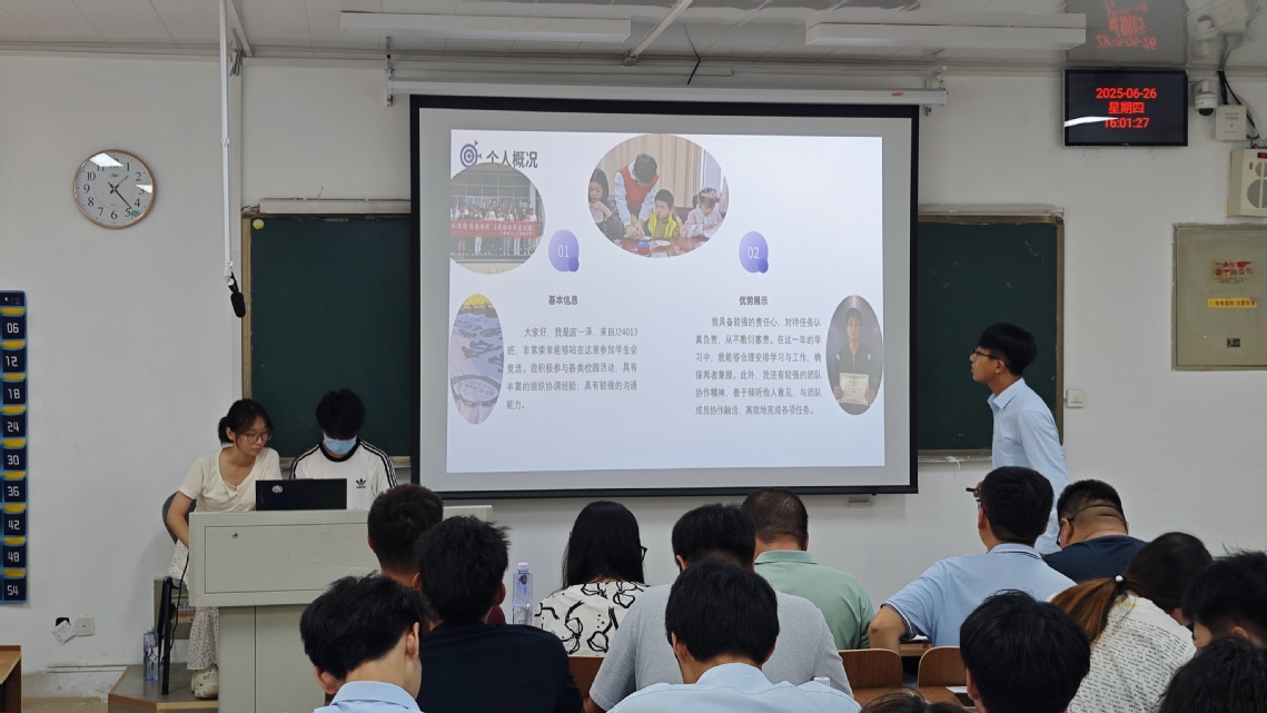 ??答辯過程中,競選各部門崗位的同學們依次上臺進行答辯。他們精神飽滿,自信從容,通過精心準備的PPT,從個人優(yōu)勢、工作經(jīng)歷、對競選崗位的理解以及未來工作規(guī)劃等方面進行了全面闡述。有的同學分享了自己在參與學生會活動中積累的組織經(jīng)驗,展示了出色的溝通協(xié)調(diào)能力;有的同學結(jié)合自身專業(yè)知識,提出了創(chuàng)新活動形式、提升活動質(zhì)量的獨特想法;還有的同學表達了為同學服務(wù)的堅定決心,承諾將以更高效、更貼心的工作態(tài)度,搭建好學院與同學之間的橋梁。