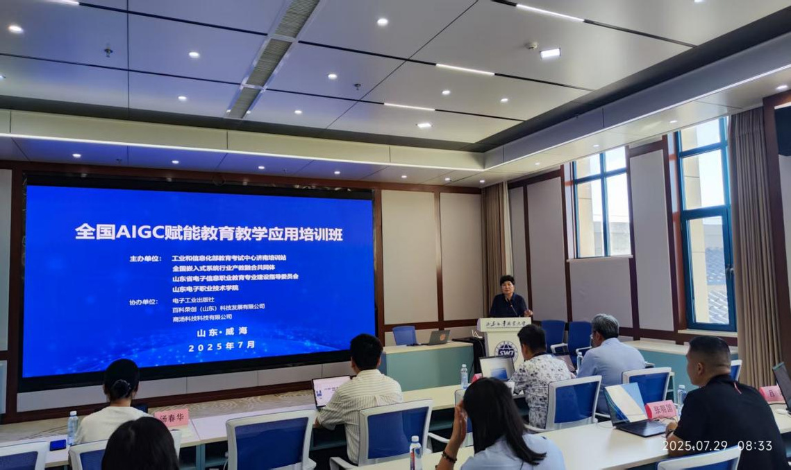 ??7月28日至31日,由工業(yè)和信息化部教育考試中心濟南培訓(xùn)站、全國嵌入式系統(tǒng)行業(yè)產(chǎn)教融合共同體、山東電子職業(yè)技術(shù)學(xué)院等主辦,計算機與軟件工程系承辦的“全國AIGC賦能教育教學(xué)應(yīng)用培訓(xùn)班”在威海山東外事職業(yè)大學(xué)圓滿落幕。安徽職業(yè)技術(shù)學(xué)院等省內(nèi)外30余位職業(yè)院校骨干教師參加培訓(xùn),共同探索AIGC技術(shù)在教育領(lǐng)域的創(chuàng)新應(yīng)用,推動教育教學(xué)模式變革與人才培養(yǎng)質(zhì)量提升。