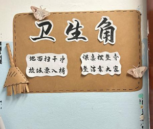 信息欄:位于前門右側(cè),張貼最新課程表、值日表(每日更新)、班級公約,用彩色卡紙裝飾邊框,提升辨識度。