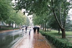 撐傘時(shí)別只顧低頭刷手機(jī)