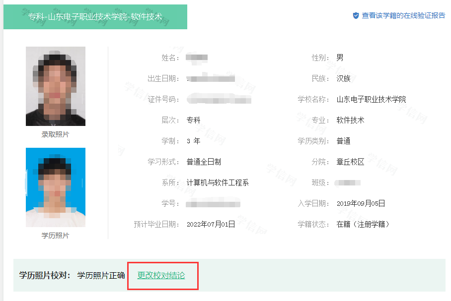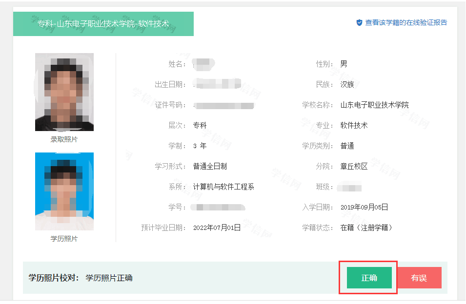 圖4 學(xué)歷照片及信息核對(duì)頁(yè)面