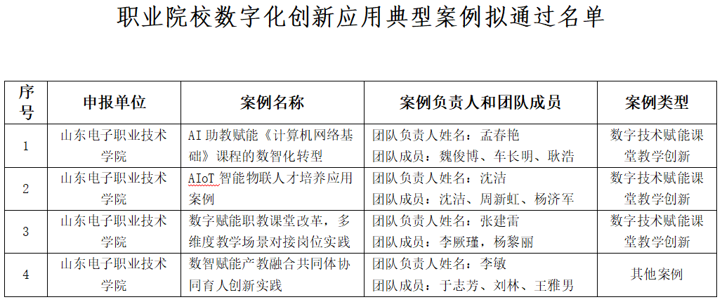 近日,中國職業(yè)技術(shù)教育學(xué)會(huì)教育數(shù)字化工作委員會(huì)公布了《職業(yè)院校數(shù)字化創(chuàng)新應(yīng)用典型案例擬通過名單》。在全國職業(yè)院校申報(bào)的案例中,共77所院校的107個(gè)案例入選。我校“AI助教賦能《計(jì)算機(jī)網(wǎng)絡(luò)基礎(chǔ)》課程的數(shù)智化轉(zhuǎn)型”等4個(gè)案例成功入圍,入選數(shù)量位列第一,彰顯了學(xué)校在職業(yè)教育數(shù)字化轉(zhuǎn)型中的創(chuàng)新實(shí)力與示范引領(lǐng)作用。
