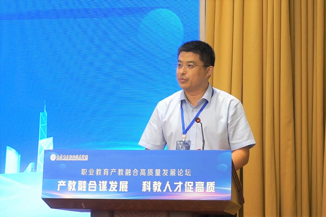 陳志浩在講話中提出,在山東省打造職教高地“升級版”關鍵時期,舉辦本次論壇助力職業(yè)教育產教融合高質量發(fā)展恰逢其時,希望產教融合共同體站在新發(fā)展新起點上,順勢而動、乘勢而上,為職業(yè)教育高質量發(fā)展插上騰飛之翼,為山東職教高質量發(fā)展塑造新動能、新優(yōu)勢,為構建中國現代職教體系打造示范、探索路徑、樹立標桿。