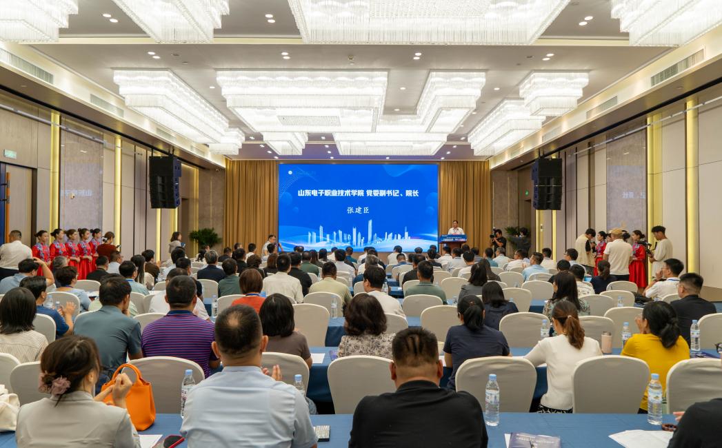 畢叢福在致辭中代表山東電子職業(yè)技術學院全體師生員工向各位領導和嘉賓的到來表示熱烈歡迎。他表示,山東電子職業(yè)技術學院將持續(xù)推進以“辦學能力高水平、產教融合高質量”為導向的“新雙高”建設,持續(xù)打造“五金”,以教學關鍵要素“小切口”全面推動職業(yè)教育“大改革”,持續(xù)深化校企合作,推進產教融合共同體、市域聯合體實質化運作,構筑與行業(yè)企業(yè)“協(xié)同育人、協(xié)同辦學、協(xié)同創(chuàng)新”的人才培養(yǎng)新機制。