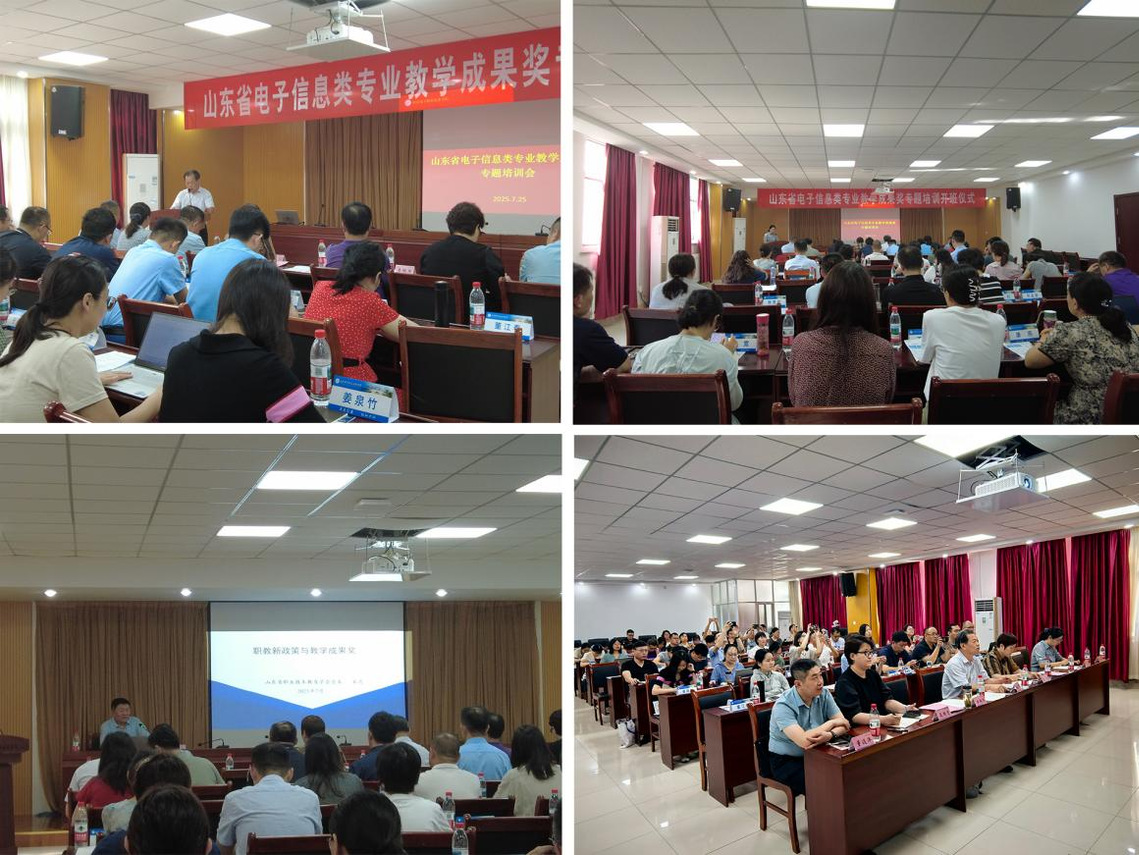 7月25日,由山東省電子信息教學指導委員會、山東省電子信息職業(yè)教育教學指導委員會、山東電子學會聯合主辦,山東電子職業(yè)技術學院承辦的省電子信息類專業(yè)教學成果獎專題培訓班正式啟動。山東省職業(yè)技術教育學會會長石忠、山東省信息產業(yè)協會理事長曹茂永、山東省電子學會副理事長兼秘書長高暘、山東電子職業(yè)技術學院教務處處長張欣等參加開班儀式。培訓歷時一天,來自全省各高校的50余名電子信息類專業(yè)骨干教師參加。