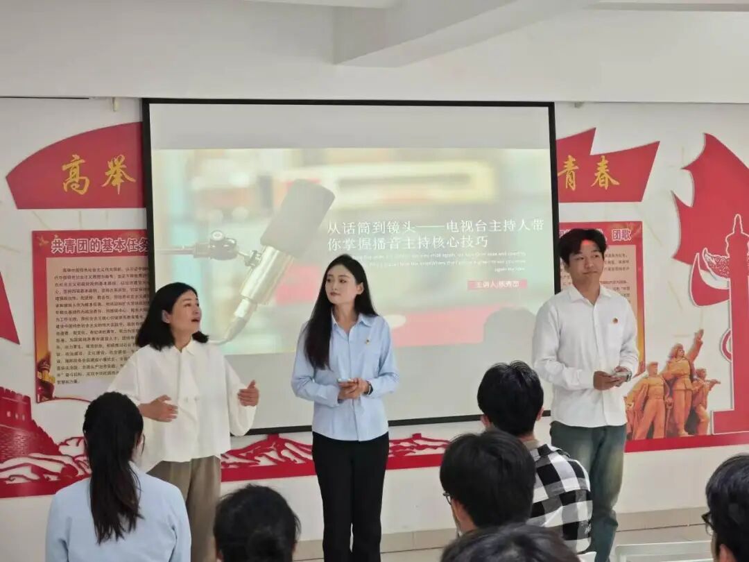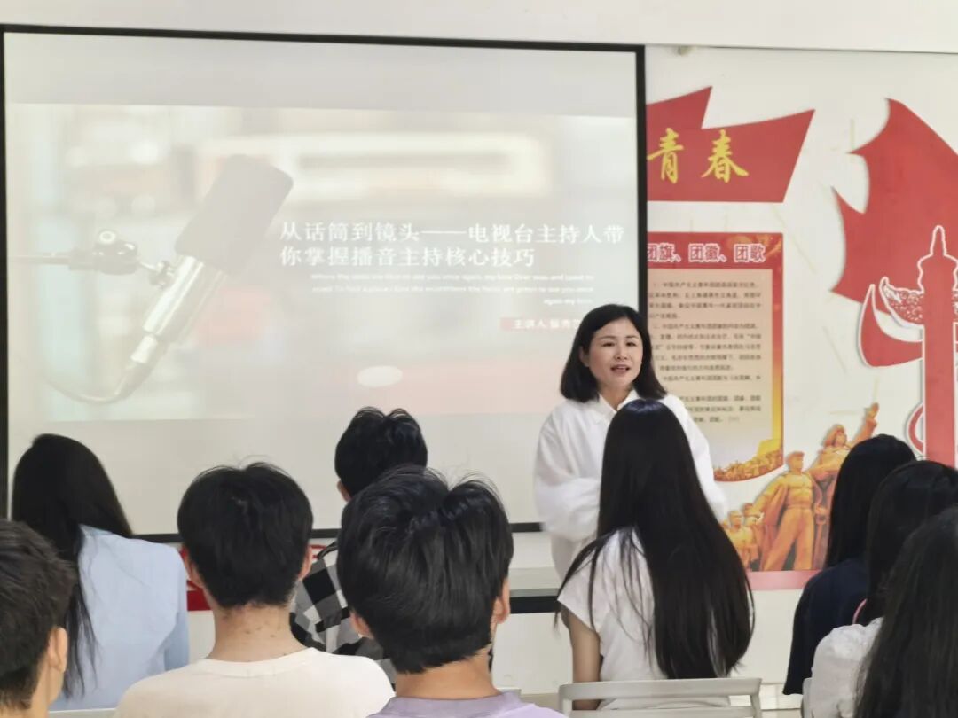 5月22日,物控雅苑一站式學生社區(qū)迎來重磅活動——菏澤電視臺主持人、98級行業(yè)精英張秀巒以校外導師身份走進社區(qū),為金話筒主持隊、校園廣播電視臺成員及青年理論學習小組代表帶來“聲臨其境的語言表達藝術”專題指導,并正式受聘為社區(qū)實踐指導教師。