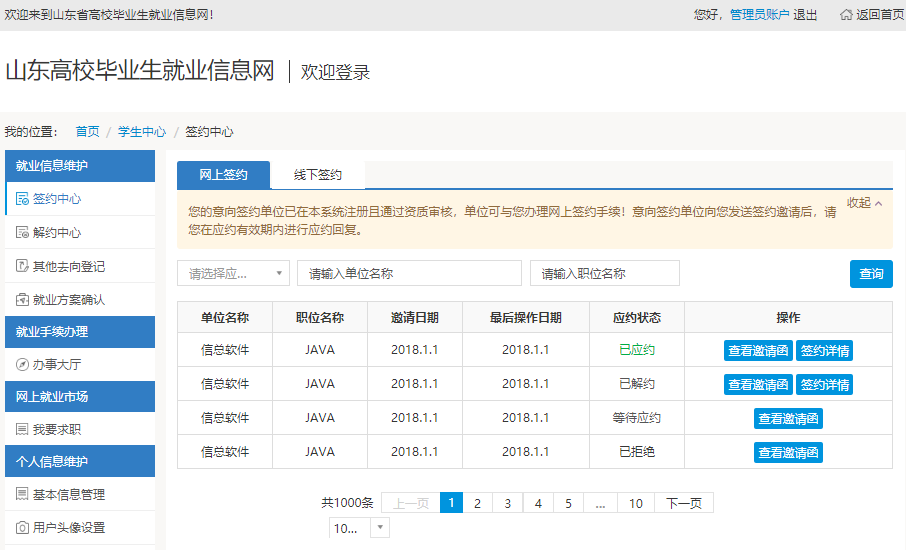 說(shuō)明2:學(xué)生網(wǎng)簽單位時(shí),有些單位會(huì)增加補(bǔ)充條款,要認(rèn)真研讀條款內(nèi)容,不清楚的可咨詢(xún)?cè)盒@蠋煟_認(rèn)后再應(yīng)約。一經(jīng)確認(rèn)協(xié)議生效,需要承擔(dān)相應(yīng)責(zé)任。