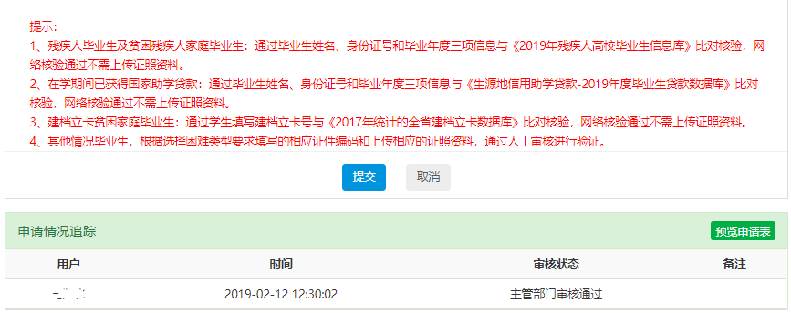 信息提交后,可在下方“申請(qǐng)情況跟蹤”板塊查看審核進(jìn)度情況。