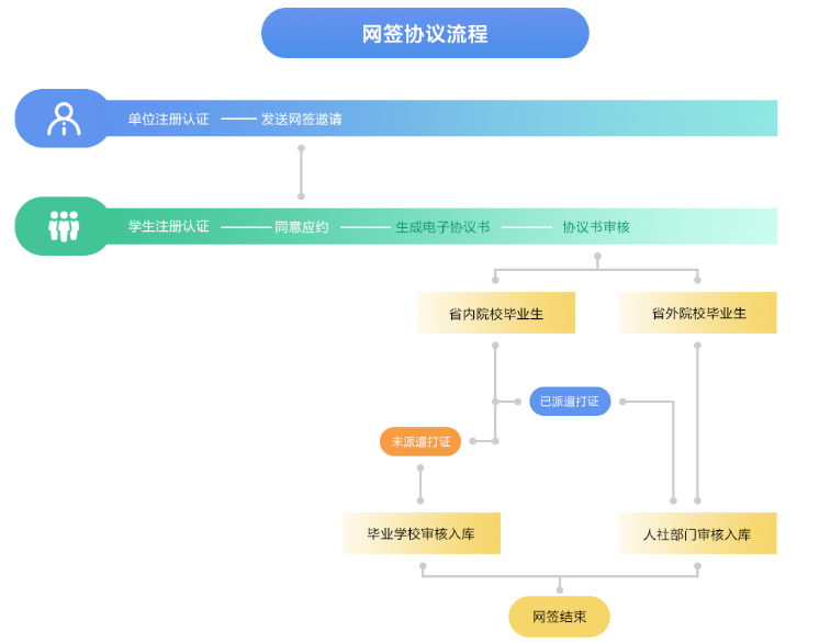 2、網(wǎng)簽應(yīng)約。學(xué)生應(yīng)約生成協(xié)議書(shū),發(fā)送審核,可對(duì)審核過(guò)程跟蹤。離校前由畢業(yè)院系或?qū)W校審核,離校后發(fā)送單位注冊(cè)地區(qū)縣人社部門(mén)審核。