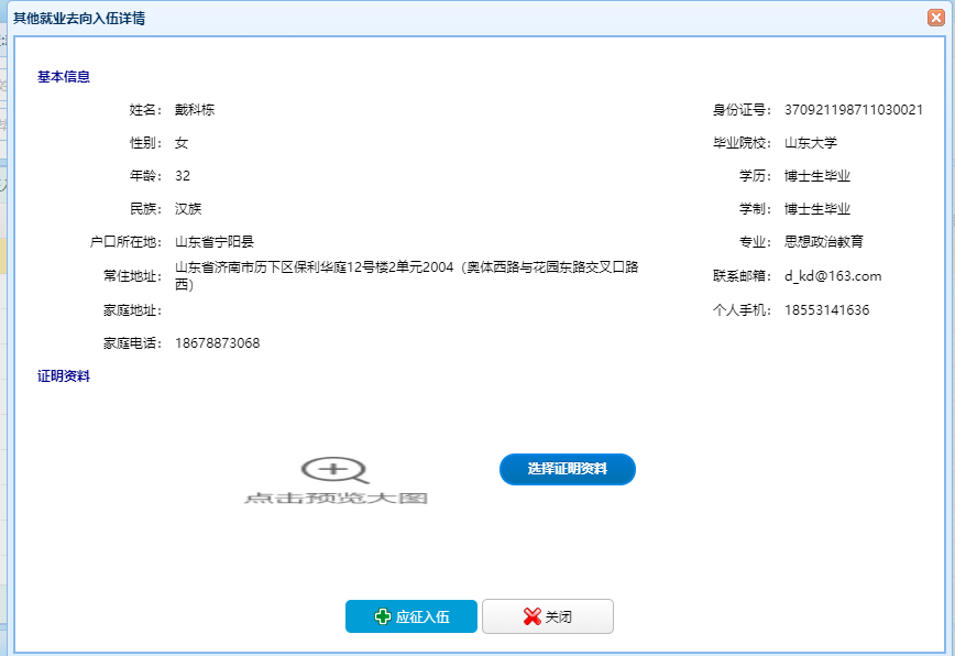 操作說(shuō)明:學(xué)生如果報(bào)名應(yīng)征入伍,則選擇選擇應(yīng)征入伍類(lèi)型,在界面上傳證明材料。如有不確定信息可,確認(rèn)無(wú)誤信息可
