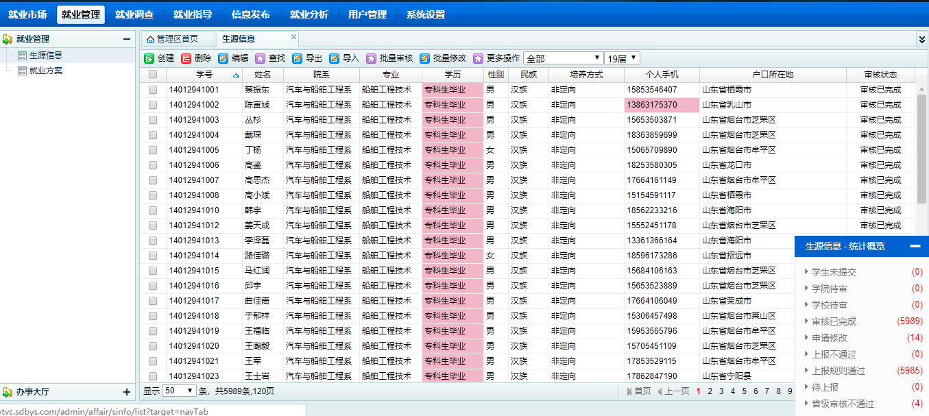 功能描述:高校生源信息采集和審核上報(bào)工作通過(guò)“高校就業(yè)管理系統(tǒng)”完成。“高校就業(yè)管理系統(tǒng)”是生源信息采集系統(tǒng)升級(jí)版本,升級(jí)后的系統(tǒng)部署到云環(huán)境,各高校不需要單獨(dú)安裝,根據(jù)分配的賬號(hào)即可使用。系統(tǒng)培訓(xùn)手冊(cè)單獨(dú)裝訂。