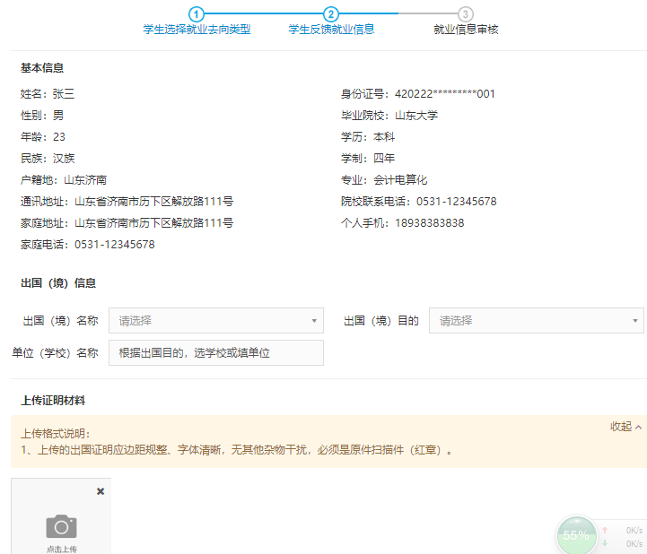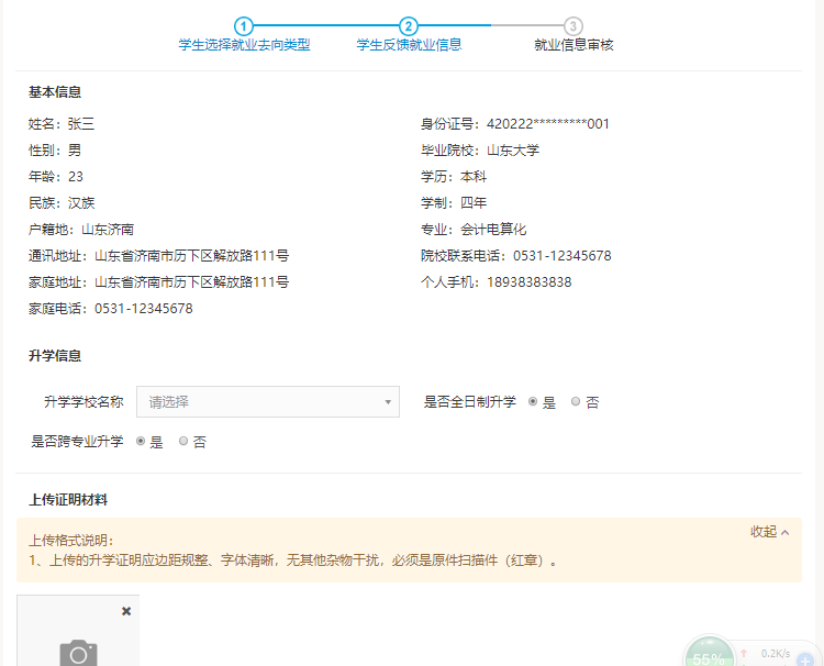 操作說(shuō)明:學(xué)生如果升學(xué),則選擇選擇升學(xué)類(lèi)型,在界面按要求填寫(xiě)升學(xué)信息并上傳證明材料。如有不確定信息可,確認(rèn)無(wú)誤信息可