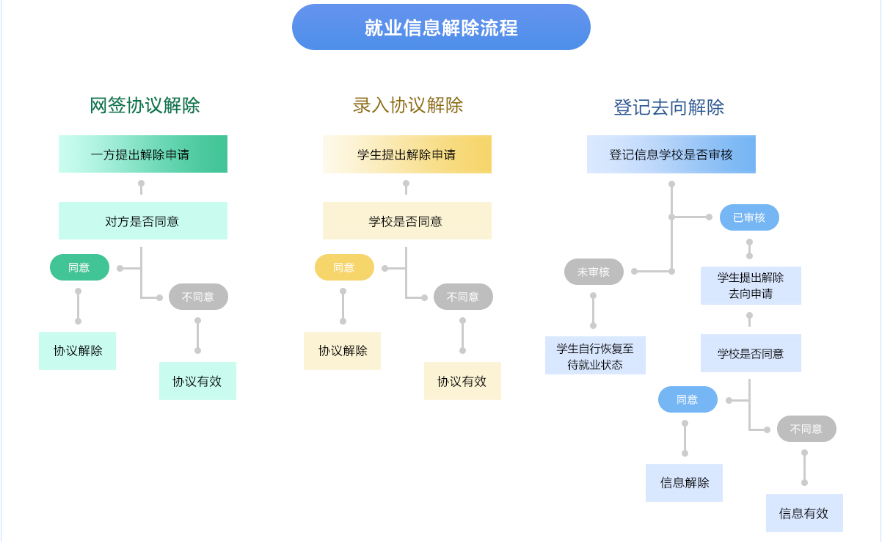 功能描述:實(shí)現(xiàn)網(wǎng)簽協(xié)議、錄入?yún)f(xié)議和登記其他去向后,如果解除協(xié)議或變更就業(yè)信息需要辦理的手續(xù)。