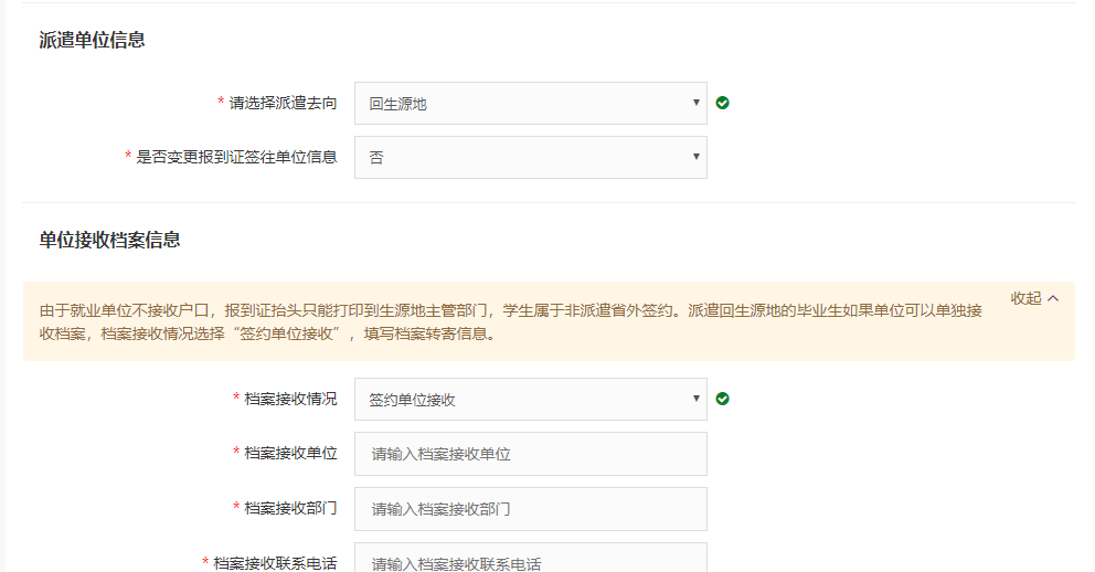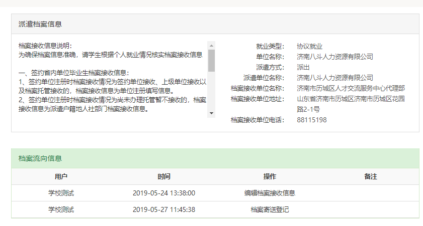 單位派遣信息和檔案轉(zhuǎn)寄信息