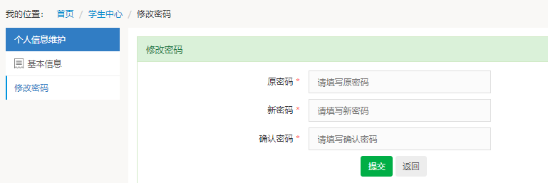 功能描述:實(shí)現(xiàn)高校畢業(yè)生修改登錄密碼功能。