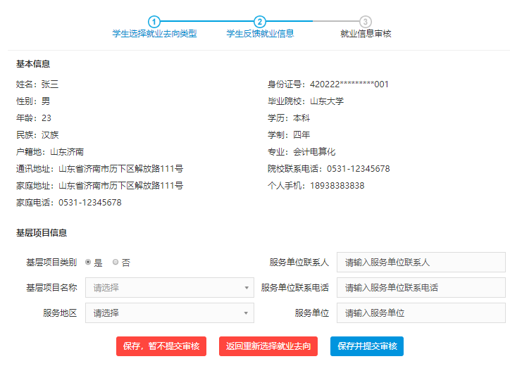 功能描述:實(shí)現(xiàn)山東生源未就業(yè)高校畢業(yè)生填寫(xiě)實(shí)名登記信息功能。