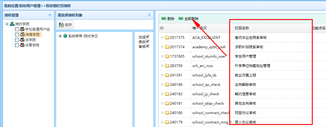 審核規(guī)則:院系和學(xué)校級(jí)都可以審核解除。