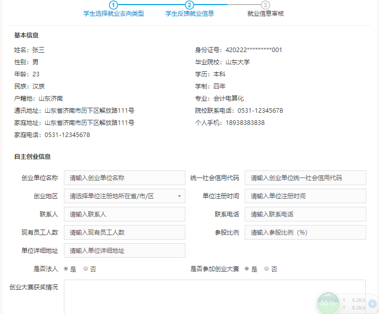 操作說(shuō)明:學(xué)生如果自主創(chuàng)業(yè),則選擇選擇自主創(chuàng)業(yè)類(lèi)型,在界面按要求填寫(xiě)自主創(chuàng)業(yè)信息并上傳證明材料。如有不確定信息可,確認(rèn)無(wú)誤信息可