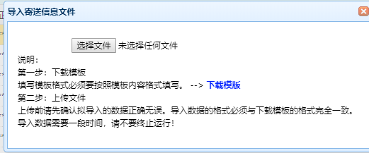 2、導(dǎo)入寄送信息:可以把檔案寄送登記信息整理為excel文件,一次性導(dǎo)入系統(tǒng)。