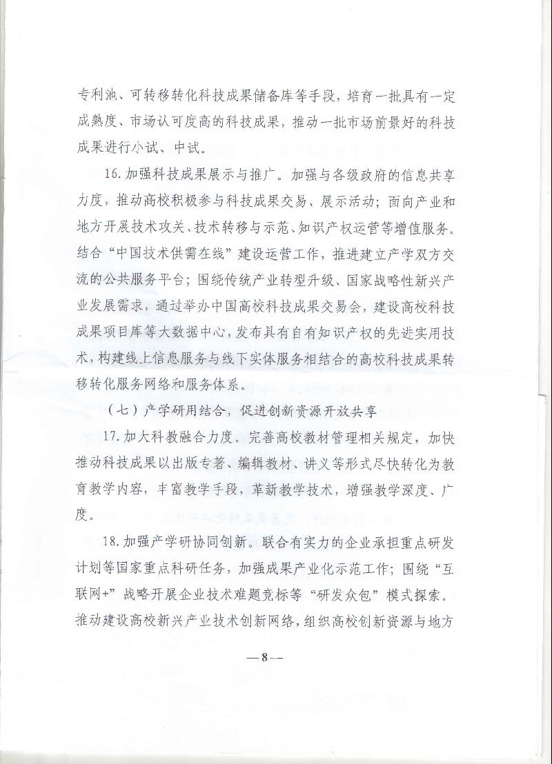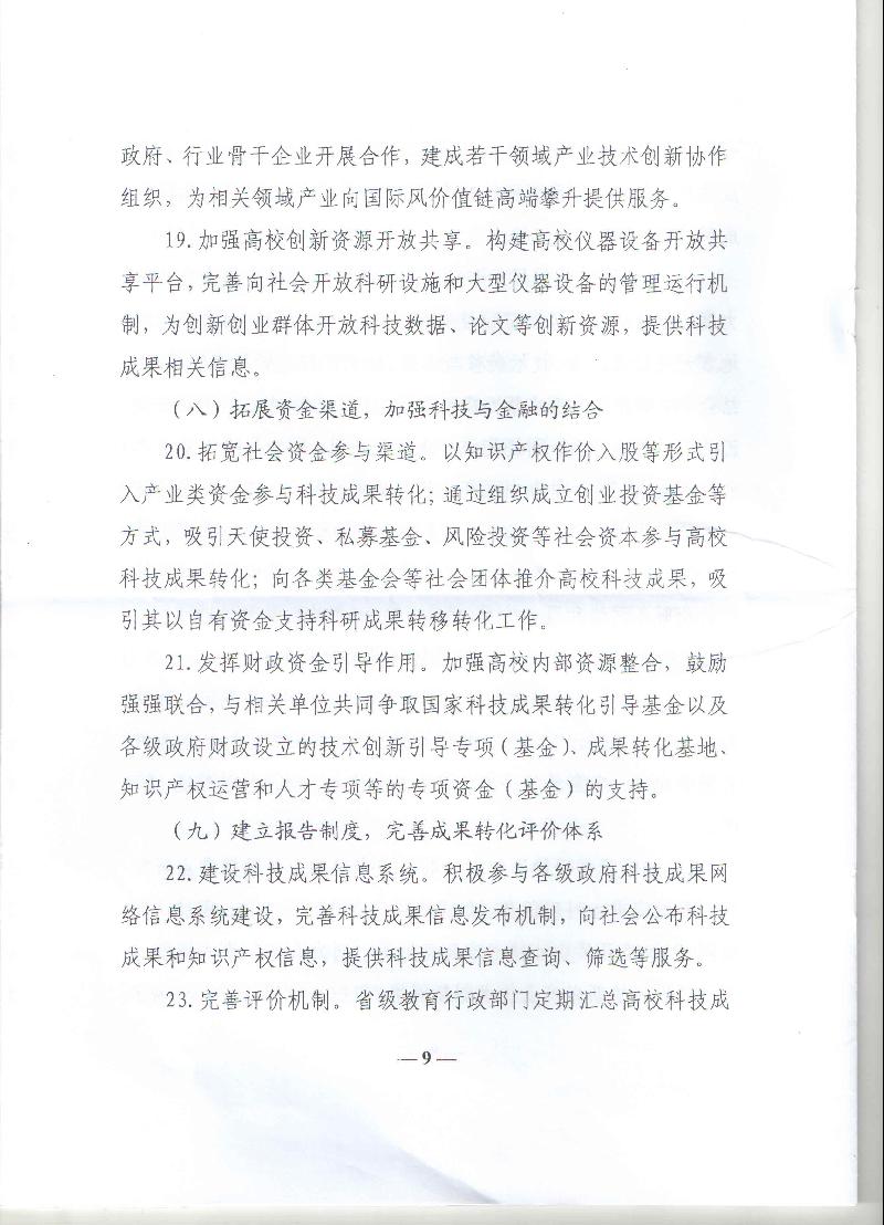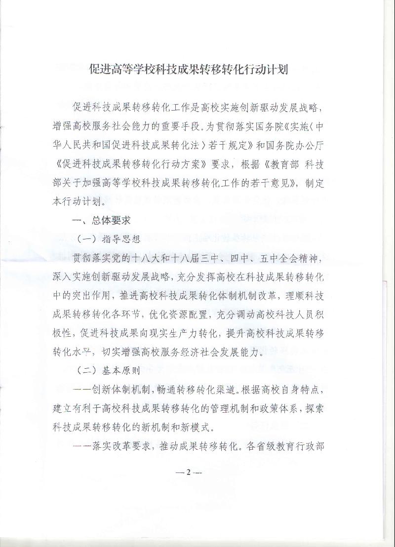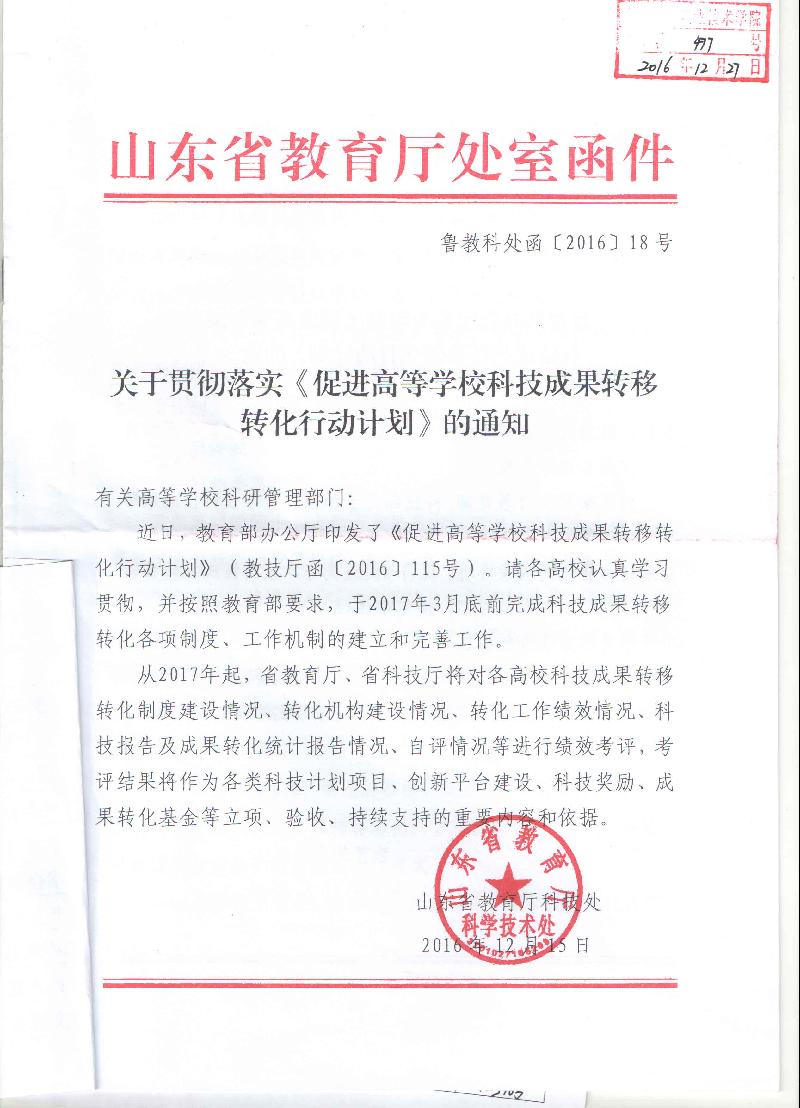山東省教育廳關(guān)于貫徹落實(shí)《促進(jìn)高等學(xué)校科技成果轉(zhuǎn)移轉(zhuǎn)化行動(dòng)計(jì)劃》的通知