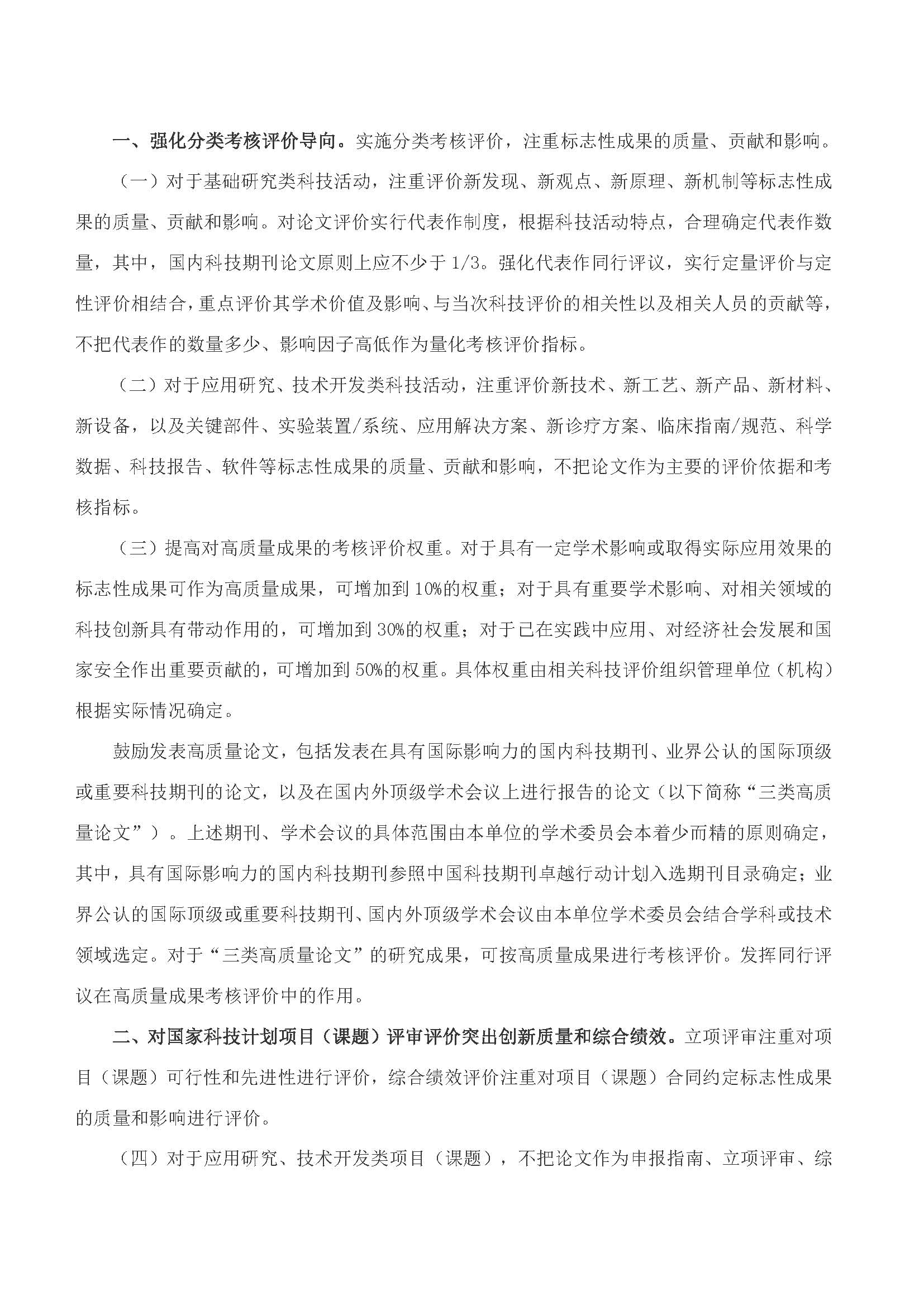 科技部印發(fā)《關于破除科技評價中“唯論文”不良導向的若干措施(試行)》的通知