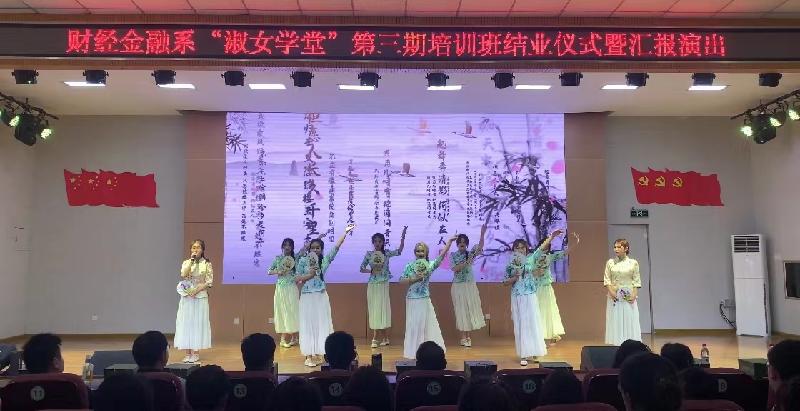 為提高女大學(xué)生的藝術(shù)素養(yǎng)和綜合素質(zhì),展示女性的風(fēng)采與魅力,6月20日下午,財(cái)經(jīng)金融系在學(xué)術(shù)報(bào)告廳舉辦了“淑女學(xué)堂”第三期結(jié)業(yè)儀式暨匯報(bào)演出,院長(zhǎng)張訓(xùn)華出席活動(dòng),辦公室、組織人事處、宣傳統(tǒng)戰(zhàn)部、學(xué)生工作處及各系部負(fù)責(zé)人一同觀看了演出。