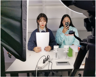 2020年我系與企業(yè)合作,創(chuàng)建新媒體(直播營銷)實訓(xùn)基地,基地分為化妝區(qū)、直播間、工作區(qū)、業(yè)務(wù)洽談區(qū)等,配有背景板、補(bǔ)光燈,手機(jī)支架、電腦等多套設(shè)備,不同的直播間場景,能夠滿足不同商品的直播營銷需求,也為直播營銷人才培養(yǎng)提供保障。