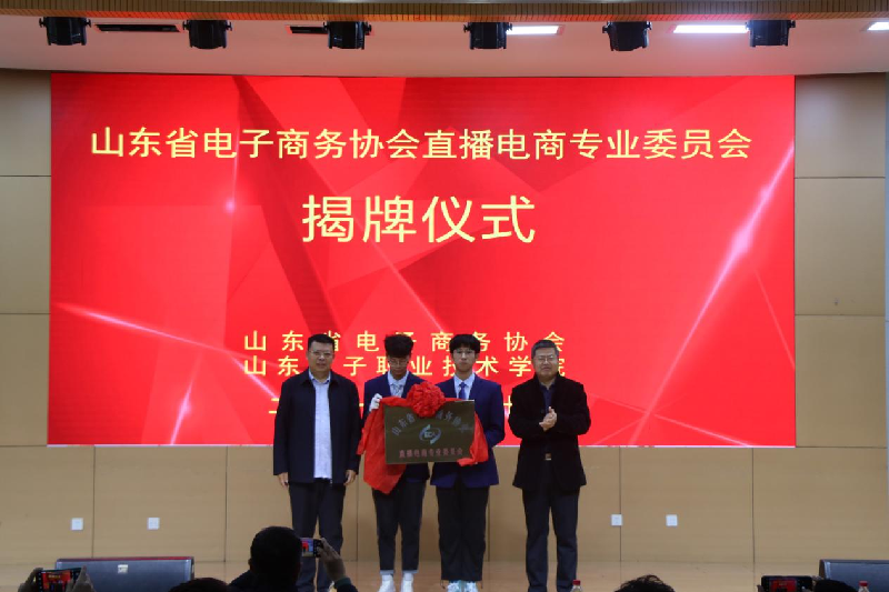 隨后,山東省電子商務(wù)協(xié)會(huì)秘書長(zhǎng)于登杰宣讀直播電商專業(yè)委員會(huì)成立文件和委員會(huì)組成名單,發(fā)布《山東省直播電商產(chǎn)業(yè)發(fā)展白皮書》。我校是直播電商專業(yè)委員會(huì)主任單位,于家欣和梁會(huì)亭共同為山東省電子商務(wù)協(xié)會(huì)直播電商專業(yè)委員會(huì)揭牌。