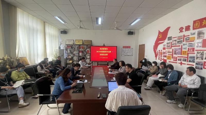2023年4月20日下午,商務管理系在綜合樓408會議室舉辦2023年教師教學能力比賽。商務管理系主任李敏以及部分專任教師參加了活動。