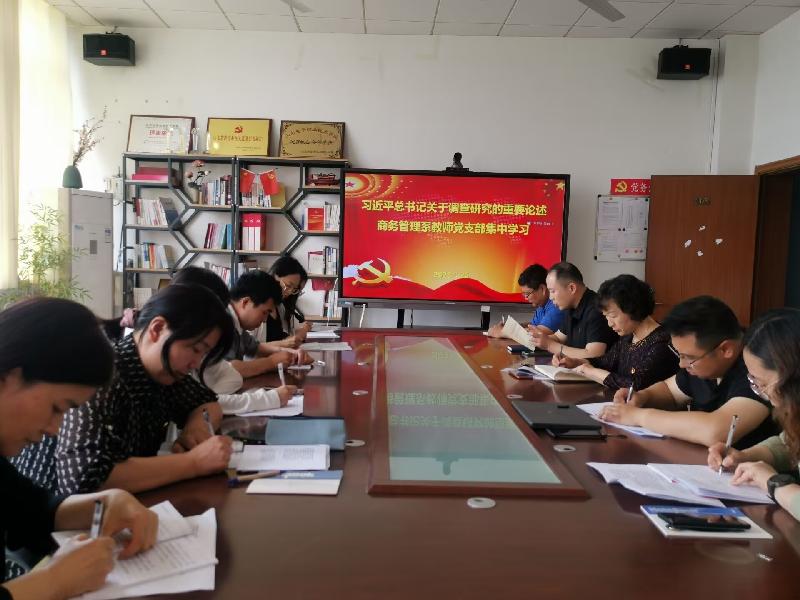 2023年5月25日下午,商務(wù)管理系教師黨支部組織黨員教師開展以“習(xí)近平總書記關(guān)于調(diào)查研究的重要論述”為主題的集中學(xué)習(xí)主題教育活動。