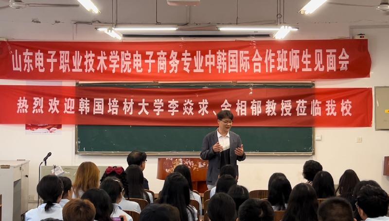 電子商務(wù)專業(yè)中韓國際合作班是我校第一個中外合作辦學(xué)項目,2022年首次招生,每屆招生100人。韓國培材大學(xué)安排本校韓國籍教授親自來我校進(jìn)行線下授課,是對中外合作辦學(xué)項目的高度重視。學(xué)生通過學(xué)習(xí)國際化的課程教學(xué)資源,不僅拓寬學(xué)生的國際化視野,也能提高學(xué)生的綜合素質(zhì)和國際競爭力,全面提高專業(yè)人才培養(yǎng)質(zhì)量,助力學(xué)校高質(zhì)量發(fā)展。(商務(wù)管理系)
