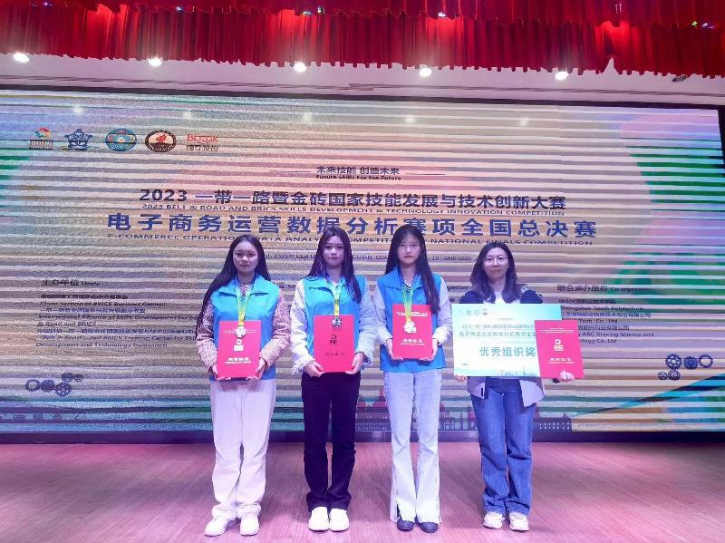 2023年12月2日,由金磚國家工商理事會中方理事會等單位聯(lián)合主辦的2023一帶一路暨金磚國家技能發(fā)展與技術創(chuàng)新大賽電子商務運營數據分析賽項全國總決賽在中山火炬職業(yè)技術學院舉行,來自全國77所院校的中職、高職、本科共計85支隊伍參加總決賽,我校商務管理系電子商務專業(yè)趙月、曹雪霞、苑一丹三位同學獲二等獎,劉春艷、王瑞軍獲得優(yōu)秀指導教師獎,我校也被授予優(yōu)秀組織獎。