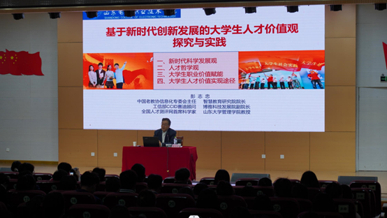 ?? 3月16日下午,由校團委主辦、商務(wù)管理系承辦的龍泉講壇系列講座《基于新時代創(chuàng)新發(fā)展的大學(xué)生人才價值觀探究與實踐》在學(xué)術(shù)報告廳舉行。中國老教授協(xié)會信息化專委會主任、智慧教育研究院院長、山東大學(xué)管理學(xué)院教授彭志忠主講。